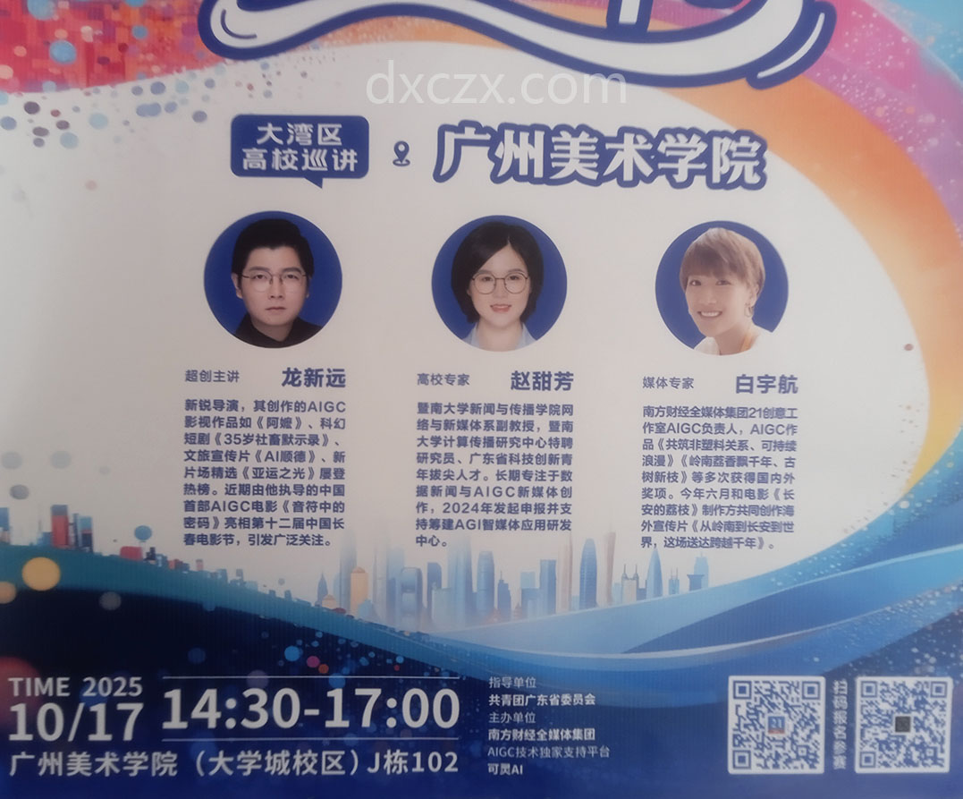 | AI广东粤动21城·AIGC视频创作征集大赛·大湾区高校巡讲·广美站 2025.10.17周五下午14点30分 J栋102 | ||||||