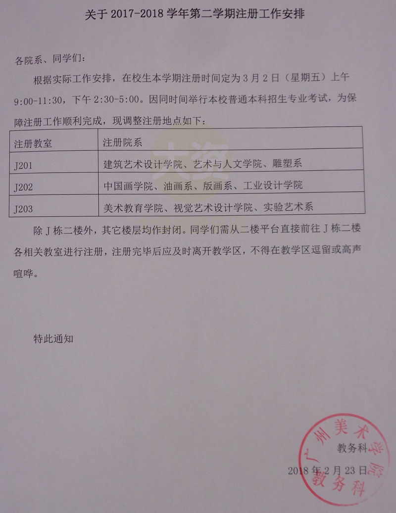 | 关于2017-2018学年第二学期注册工作安排 | ||||||