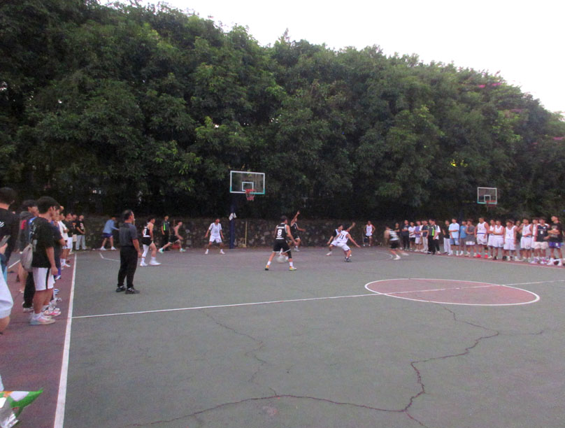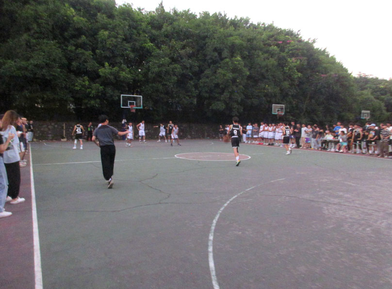 今天生活区六栋篮球场进行的一场新生杯篮球赛 药科院和中药学院常规时间22比22战平 加时阶段,中药学院把握和发挥都更胜一筹,最终以32比24取胜