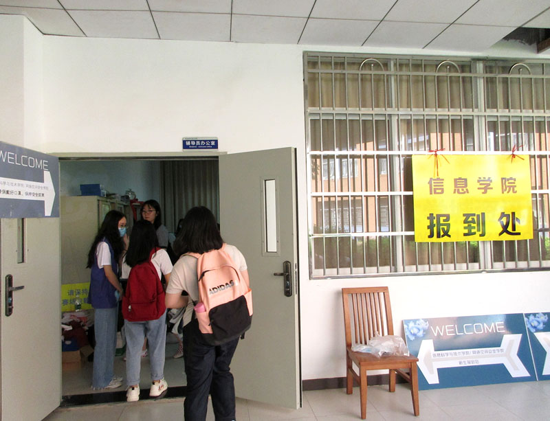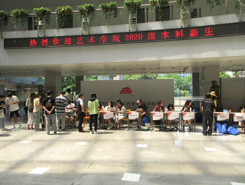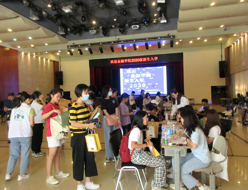 今天的天气真的是比昨天还要热晒,只能说是起码比没下雨强吧,这样看来,金融学院的报到点和环境,不免让人感到极为舒适,空间大,空调明显,室内有遮照,环境很有正式场范,对了,这里是生活区学生活动中心的多功能活动厅