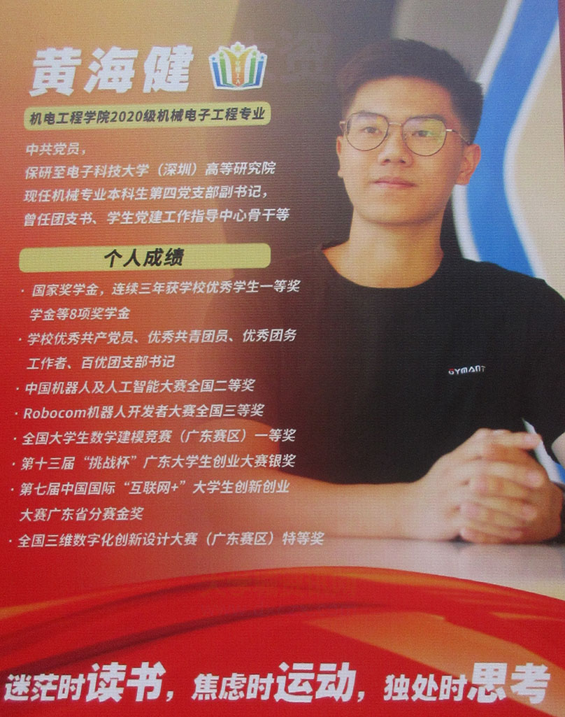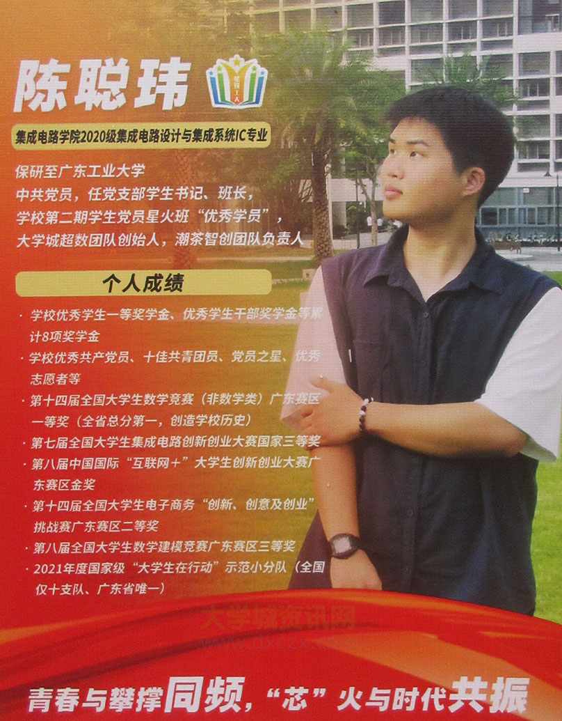 最新看到有个广东工业大学第九届校园之星评选活动应该是已经评选出来的本科生和研究生各十大谓之攀撑学子-呈显展示 本科生: 机电20级-黄海健 轻化20级-黄雪儿 土木20级-胡子豪 计算机20级-王伟杭 材能20级-李卓明 外国语20级-孔子欣 艺术20级-蔡奕辉 建筑19级-孙杨炀 经济20级-赵斐然 集成20级-陈聪玮 研究生: 机电21级-熊强 自动化21级-黄成杰 轻化21级-陈国威 信工21级-韦怡婷 土木21级-冯源 计算机22级-姜达成 数统22级-肖云浩 物理22级-张润青 艺术21级-肖明艳 生态21级- 钟秋萌