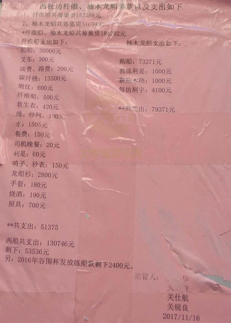 | 西社坊纤维、柚木龙船筹款以及支出如下 | ||||||