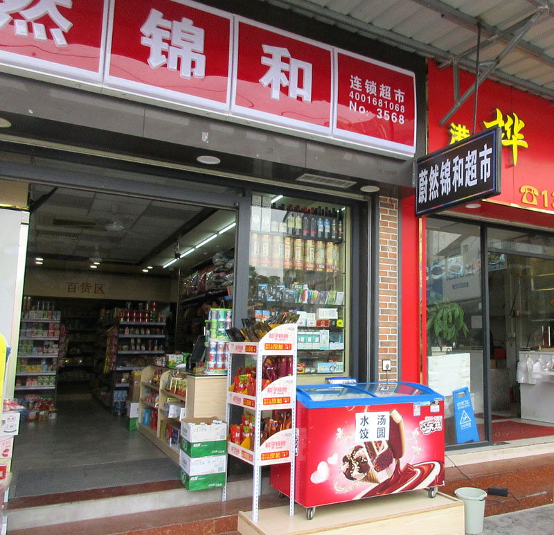 | 下朗中刚新开没多久的蔚然锦和超市,今天看到新架设了一个横向伸出的估计是晚上会闪灯的招牌 | ||||||