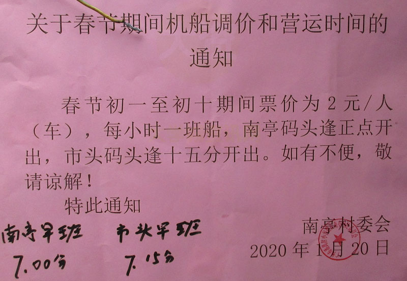 | 大学城南亭村-南村镇市头村船渡-春节期间调价和营运时间通知 | ||||||