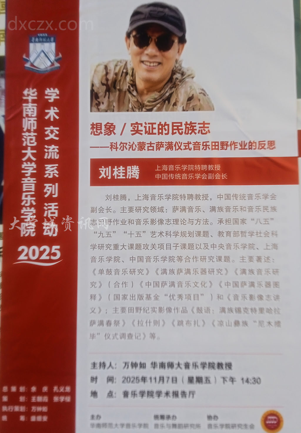 讲座:想象-实证的民族志--科尔沁蒙古萨满仪式音乐田野作业的反思 主讲:刘桂腾 2025.11.07周五下午14点30 华师音乐学院学术报告厅