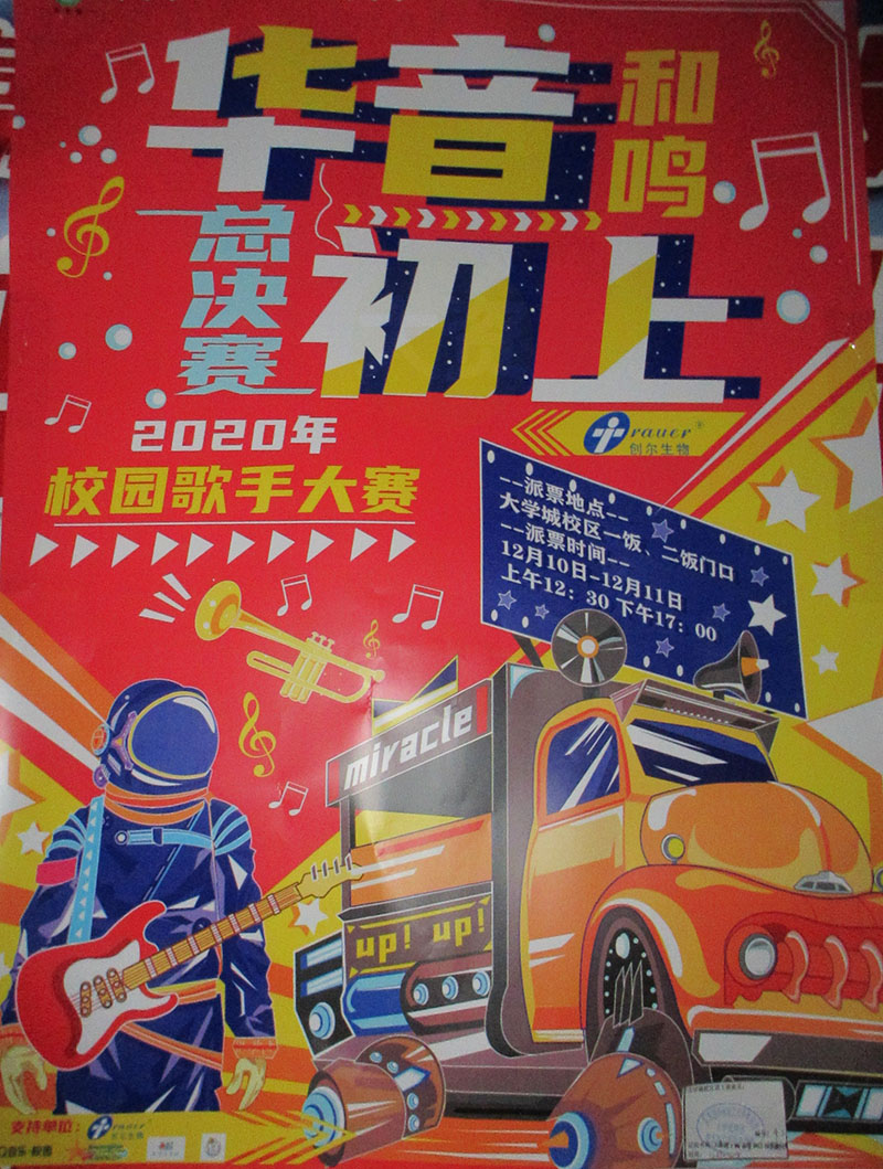 华音初上2020校园歌手大赛总决赛将于2020.12.12晚7点在大学城校区体育馆进行,12月10号和11号将安排在一二饭门口派票 |