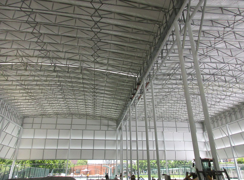 早前看公告说网球场的升级改造施工是到6月30号,现在是7月中,5、6号场棚盖的在6月底前看到就拉合上了,现在看着应该就剩场内地板的重做了,估计下学期开始前,网球场是可以完全弄好供大家使用